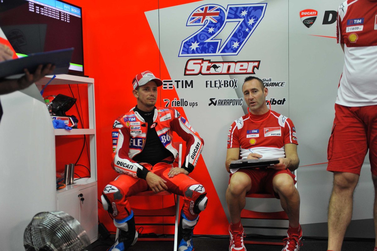 Pour Stoner, la situation est claire : « Il ne sera pas le coach de Lorenzo, ce ne sera pas possible, commentait Dall’Igna. Je tiens à préciser qu’il était question qu’il soit le coach de tous les pilotes Ducati, et non seulement celui de Jorge. Et pour lui, la page de la course semble définitivement tournée. S’il nous le demande, nous serons très heureux de lui fournir le matériel, mais cela n’arrivera pas ».