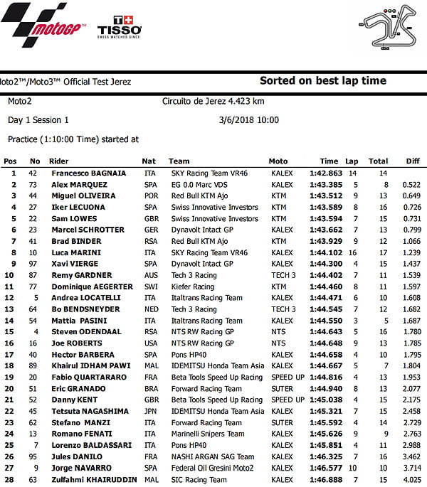 Les pilotes de Moto2 et Moto3 sont présents du 6 au 8 mars sur le circuit de Jerez pour trois jours de tests qui marquent la fin de la pré-saison avant le premier Grand Prix au Qatar qui aura lieu la semaine prochaine.