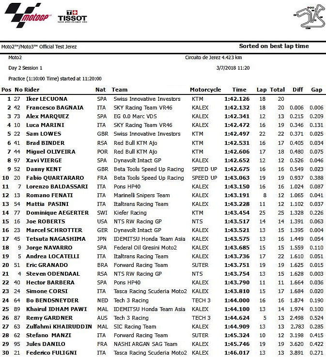 With a freshly signed #MotoGP contract in his back pocket @PeccoBagnaia set the pace on the opening day of #Moto2 testing in Jerez ? pic.twitter.com/DDOYt9tlIb