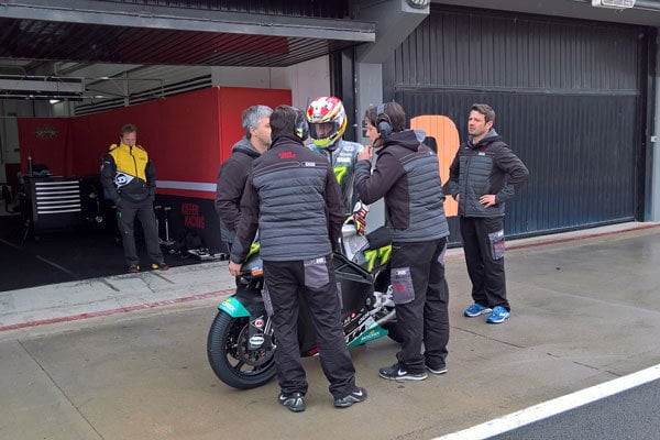 Et, effectivement, la météo n’a pas gâté les présents ce mardi, avec une piste valencienne complètement détrempée et un thermomètre ne dépassant pas les 8°.