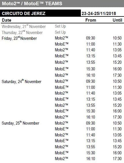 En attendant, voici l’horaire complet des séances concernant les activités des Moto2 et MotoE :