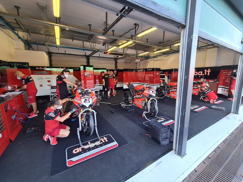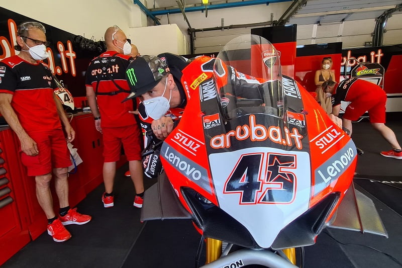 D’après Scott Redding, nouveau pilote officiel Ducati cette année, « Tout d’abord, c’est très agréable de retrouver l’équipe et une moto de course. Cela m’a vraiment manqué. Nous n’avons pu faire que quelques tours le mardi en fin d’après-midi. J’ai dit aux gars « nous sommes prêts à commencer, faisons quelques tours ». Que c’était bon ! Je me sentais bien sur la moto. En essayant de nouvelles pièces, nous avons besoin de quelques tours supplémentaires pour les comprendre, mais dans l’ensemble, cela fait du bien de retrouver l’équipe. C’est un peu bizarre que tout le monde porte des masques, et ces mains qui ne peuvent pas être serrées, mais la machine SBK est de retour et je suis content. »
