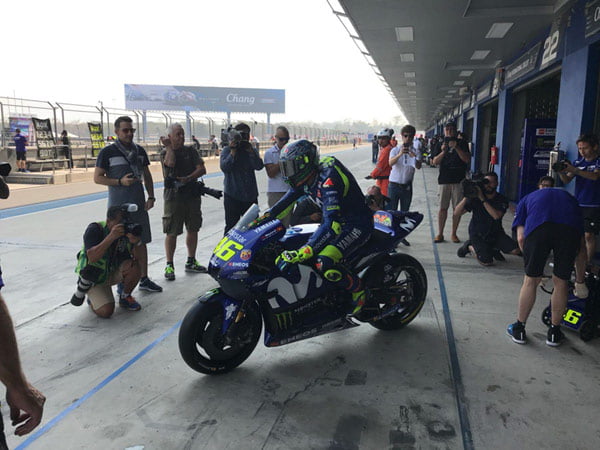 Les premières minutes n’indiquent que peu de choses sur le plan technique : les deux motos de Valentino Rossi et Maverick Vinales arborent la dernière version des ailerons Yamaha contre une seule pour Johann Zarco, et Scott Redding va tester le frein arrière au pouce.