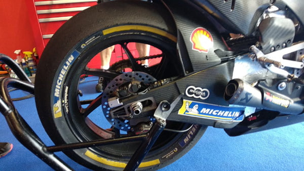 Michelin a apporté 4 pneus avant symétriques et 4 pneus arrière asymétriques. Comme à Sepang, le manufacturier français propose 2 avant avec un composé plus dur pour l’évaluation, conçus pour offrir un meilleur rapport grip/résistance sur les tracés abrasifs et 1 pneu arrière à tester avec une légère évolution de la gomme.