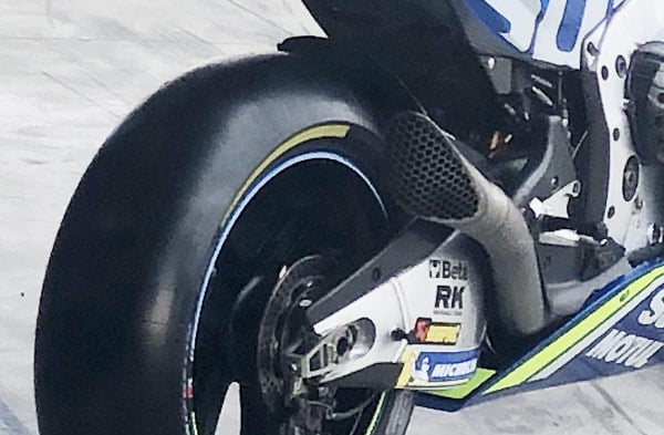 Les Suzuki présentent de nouveaux échappements, un dont la sortie est maintenant triangulaire, l’autre droit et rallongé.