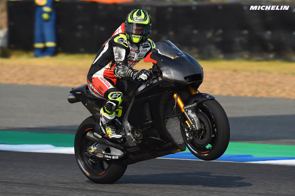 Une demi-heure plus tard, Cal Crutchlow s’empare du leadership en 1’30.150. Le Britannique, qui dispose d’une moto d’usine au sein du team LCR, a toujours été aux avant-postes de ces essais, sans pour autant utiliser le moindre aileron.
