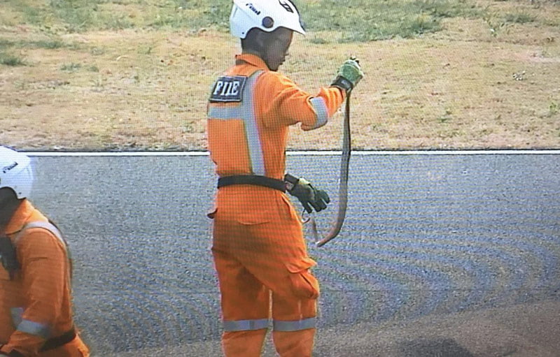 C’est le moment où un serpent (cobra ?) passionné de MotoGP décide de voir les choses de près, ce qui provoque l’interruption de la séance avec un drapeau rouge…