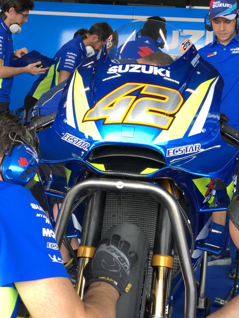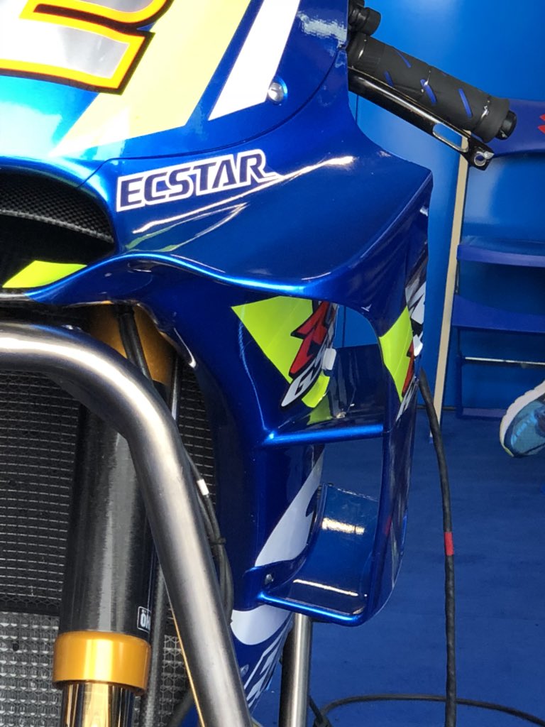 Reprenant le principe Ducati, avec des appendices aérodynamiques sur 3 plans que l’on peut démonter pour n’en garder que 2, voici la dernière évolution testée par Alex Rins et Andrea Iannone ce matin à Buriram.