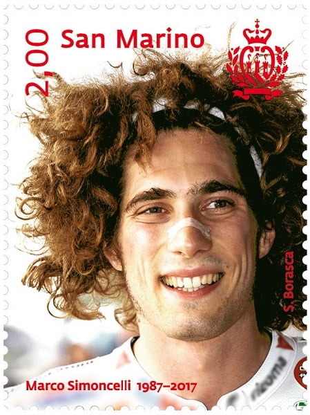 Né le  20 janvier 1987 à Cattolica, Marco Simoncelli aurait eu trente ans en ce début d’année, et le Bureau philatélique et numismatique de la République de Saint-Marin a consacré un timbre et une pièce de monnaie à ce 30e anniversaire de sa naissance.