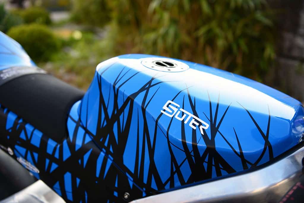 « A ma gauche la Honda RC213V-S, 4temps, 215 chevaux avec le kit Racing, de Bruce Anstey, 10 fois victorieux au TT et vainqueur de la course Superbike TT 2015 sur CBR1000RR Fireblade, à ma droite, la Suter MMX 500TT 580cc, 2 temps, 195 ch, de Ian Lougher, déjà neuf fois vainqueur au Tourist Trophy … »