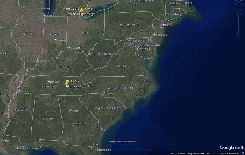 Le complexe de Flatrock se niche dans la campagne du Tennessee, ce qui n’éclairera guère davantage la plupart d’entre nous. Disons que c’est à l’ouest de Nashville et au nord d’Atlanta, pas trop trop loin de la mondialement connue « Tail of the Dragon » (queue de dragon) avec ses 318 courbes en 11 miles, mais une carte est sans doute plus parlante…