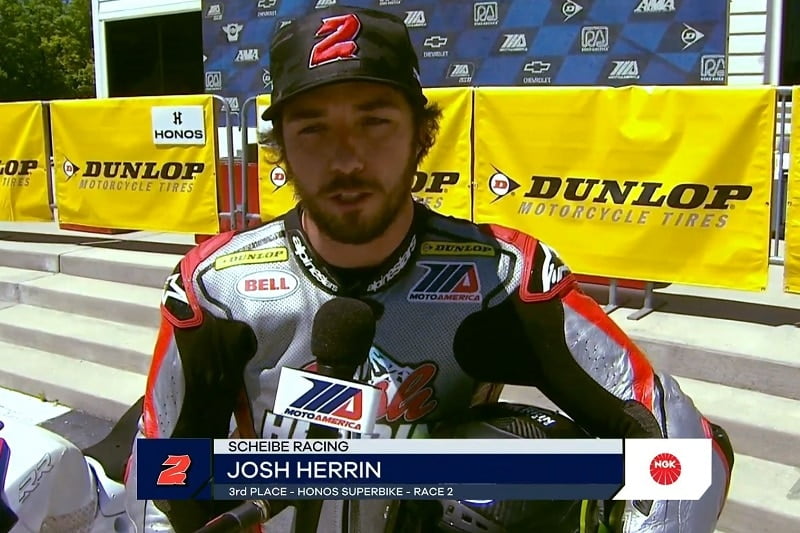 . @joshherrin and @KyleWyman had a good battle in HONOS Superbike race two on Sunday, and Herrin narrowly prevailed to finish third and notch @scheiberacing @BMWMotorradUSA's first Superbike podium result. pic.twitter.com/PJB5Tt1XXC