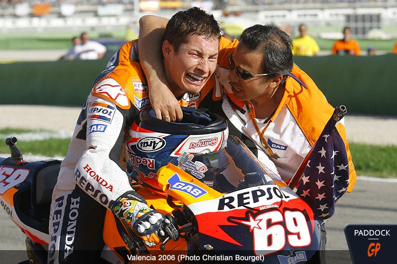 Rares sont les sports a pouvoir offrir autant d’émotions sur le même week-end. Un pilote wildcard vainqueur, et un dénouement final complètement dingue, voyant le « Kentucky Kid » sacré, en larmes et congratulé par Rossi. Ces images mythiques ne nous sont offertes que par les plus grands circuits, et il est certain que personne n’oubliera ces joutes sur le tracé valencien.
