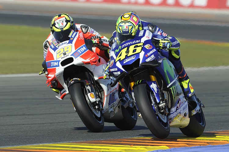 « Valencia a toujours été difficile pour moi. Nous avons essayé ais ça n’a pas suffi. Lorenzo ? Il a toujours été plus rapide que moi ici. J’ai beaucoup souffert avec mes pneus, notamment l’avant. Je n’ai pas trouvé la bonne combinaison. Je voulais mettre un dur comme Márquez, mais dans les virages à gauche ça me causait un souci. Le pneu tendre a souffert car les températures étaient plus élevées que les jours précédents. Mais franchement, ce n’est pas une excuse. Lorenzo était fondamentalement plus rapide que moi. Mardi commence les tests pour 2017, avec la nouvelle Yamaha ». Et un nouvel équipier.