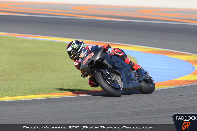 Jorge effectuait l’essentiel de la journée sur la 2016, y compris son meilleur chrono, et ne pilotait la 2017 que pour un bref roulage en fin de journée afin de préparer le mercredi. L’impression majeure qui s’est dégagée de Lorenzo a été un grand calme, depuis le matin où il a garé son scooter (Yamaha) le long du camion Ducati. Il a passé beaucoup de temps à régler sa position, estimant au début être trop sur l’avant. L’équipe ajoutait donc progressivement des épaisseurs de mousse sur l’arrière du réservoir pour qu’il se sente à son aise.