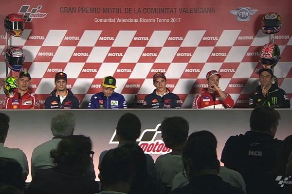 La dernière conférence de l’année a précédé ce dernier Grand Prix de la saison. Etaient invités Marc Marquez, Andrea Dovizioso, Valentino Rossi, Dani Pedrosa, Johann Zarco et Jorge Lorenzo.