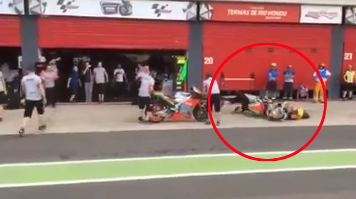 Alvaro Bautista: « j’ai freiné dans la pit-lane, je suis passé de l’asphalte au ciment humide et je n’ai rien pu faire pour éviter de heurter le mécanicien qui attendait pour prendre ma moto. J’ai rapidement vérifié comment il allait, puis je suis remonté en selle. »