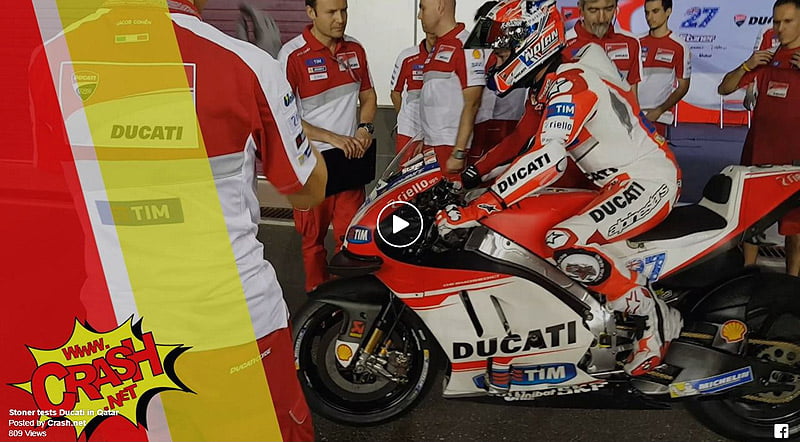 C’est à nos confrères de Crash.net que nous devons cette vidéo des premiers tours de roues de Casey Stoner sur la Ducati GP15 sur le circuit de Losail.