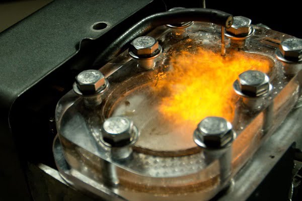 L’équipe de « Warped Perception » a fixé une plaque de verre acrylique à la culasse d’un moteur 3 chevaux Briggs and Stratton et l’a filmé en cours de fonctionnement. Pour varier un peu les plaisirs, elle a également alimenté ce petit moteur avec de la téquila, du rhum, de l’essence et du propane.