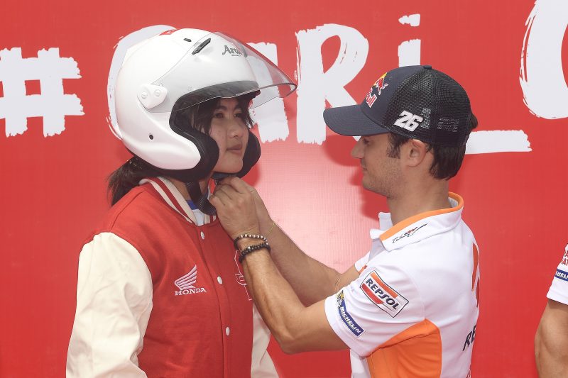 Dani Pedrosa : « C’est toujours une grande émotion de venir en Indonésie. Les fans sont très passionnés et vous pouvez le ressentir dès que vous arrivez. Il semble que tout le monde aime le motocyclisme ici, et qu’il y a beaucoup de monde qui se déplace en moto, et nous sommes heureux de soutenir la campagne de sécurité #Cari_Aman de Astra Honda. En tant que pilotes, nous savons qu’il est très important d’être bien protégé avec un casque de qualité et, quand nous sommes sur la piste, avec une combinaison équipée de protections dorsale et ventrale, car tout peut arriver. La sécurité est toujours la première priorité en pilotant une moto. »