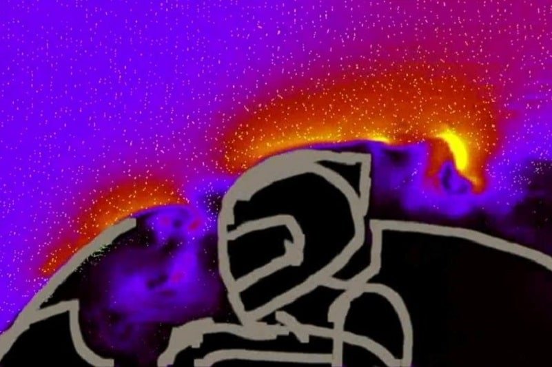 « Au départ, l’accent est mis sur le pilote « le nez dans la bulle ». Le contour est la vitesse. Notez la zone de turbulence à faible vitesse derrière l’écran et le casque du pilote. »