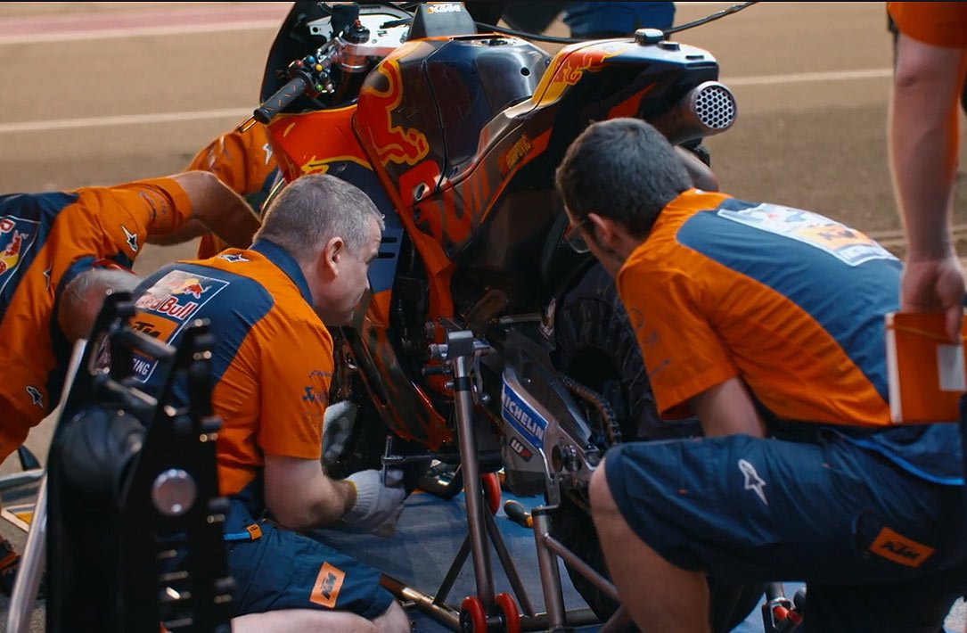 À l’image de Suzuki deux années plus tôt, KTM a toujours médiatisé les premiers pas de son retour en MotoGP. On pourrait même dire de son arrivée, tellement les moyens mis en œuvre pour créer son équipe officielle sont énormes, par rapport aux premiers pas effectués il y a 12 ans avec l’expérience Proton KR.
