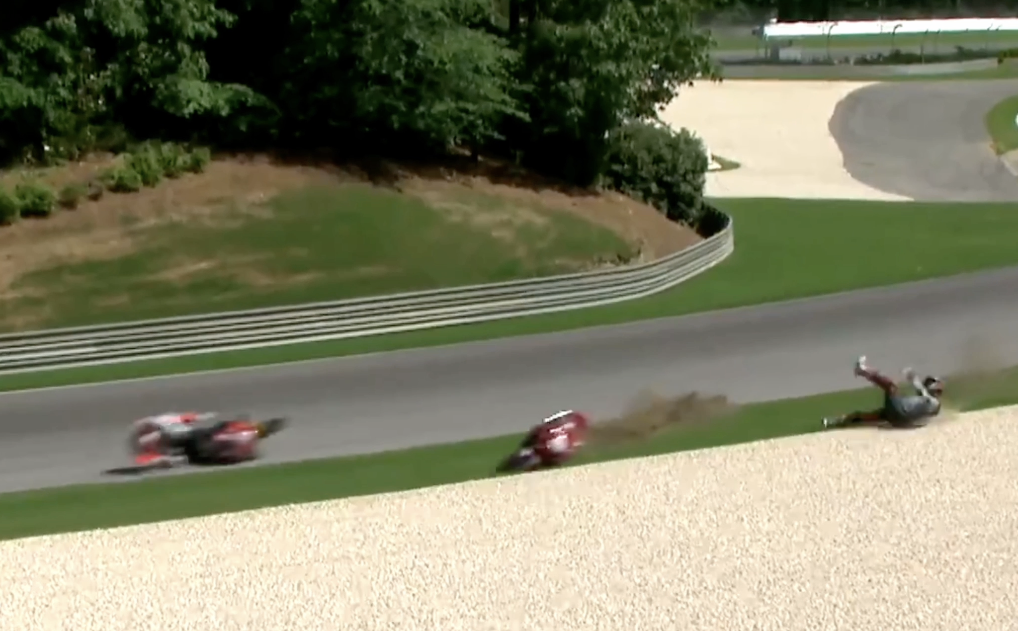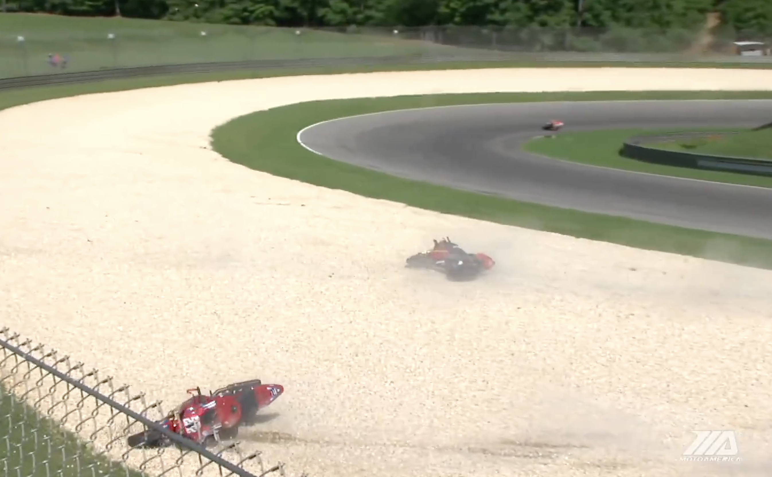 « Accroché par un pilote qui avait un tour de retard. Ils ont sorti le drapeau rouge, et j’ai ramené la moto au stand dans les délais imposés par le règlement mais cela ne les a pas empêché de me reléguer à la dix-huitième place » commente Baz sur ses réseaux sociaux au lendemain du week-end de MotoAmerica en Alabama.