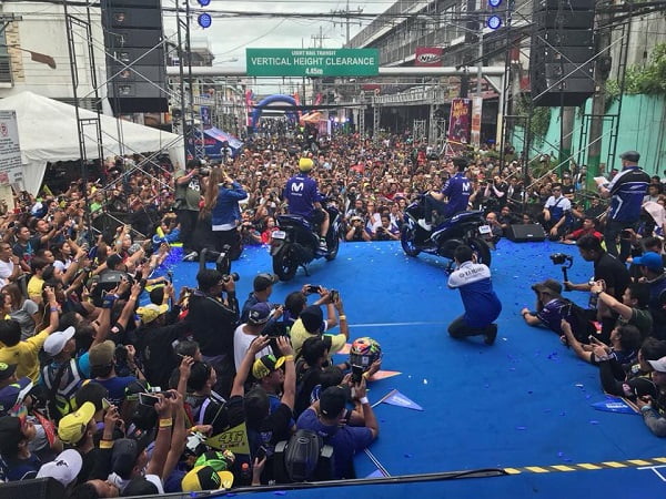 Juste avant que ne débutent les trois jours de test de Buriram en Thaïlande, les deux pilotes officiels Yamaha sont venus saluer leurs fans philippins. Ils en ont profité pour leur présenter les modèles Mio sur la 10e Avenue de Caloocan City, à Manille.