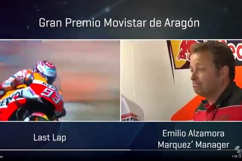Néanmoins, ce 23 septembre, rien n’était encore joué, et c’est donc une équipe Honda très stressée qui a regardé ce dernier tour, à commencer par Emilio Alzamora, le manager de Márquez. Il est toujours intéressant, parfois même amusant, de voir la réaction des proches dans les box. Même après autant de titres et de victoires de Márquez, on constate qu’Alzamora continue d’être nerveux et de craindre une erreur, comme si c’était la première fois.