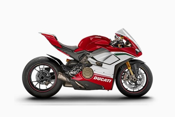 L’influence de la compétition est indéniable, et l’image de Ducati s’en trouve ainsi modifiée. Il existe une V4 standard (214 ch à 13 000 tr/mn, 175 kg à sec, 22 490 €), une « S » et surtout une version Speciale équipée de suspensions Öhlins en lieu et place des éléments Showa et Sachs de la standard, d’une ligne d’échappement Akrapovic, de pièces en magnésium, de roues allégées et d’une selle en alcantara. Grâce à l’échappement, on atteint 226 chevaux, et le prix est de 39 900 €.