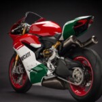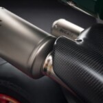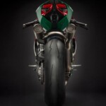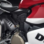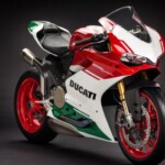 Pour environ 45 000 euros, vous pourrez donc commander votre Ducati 1299 Panigale R Final Edition. une série numérotée mais pas limitée. Ce prix place la machine entre la Panigale R et la 1299 Superleggera, et se justifie par toute une multitude de caractéristiques techniques allant des aides électroniques (ABS avec aide en courbe, Traction Control, Anti-Wheeling, Frein moteur, etc., le tout configurable grâce à plusieurs cartographies) au moteur revisité ( 209 cv à 11000 trs/mn, couple de 142 Nm à 9000 trs/mn grâce à un alésage de 116mm et une augmentation du diamètre des soupapes de 46,8 à 48 mm pour l’admission et de 38,2 à 39,5 mm pour l’échappement).