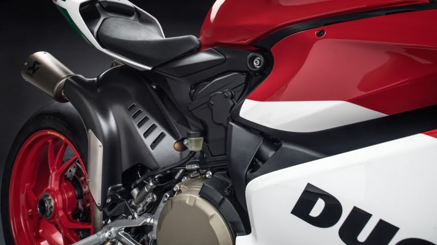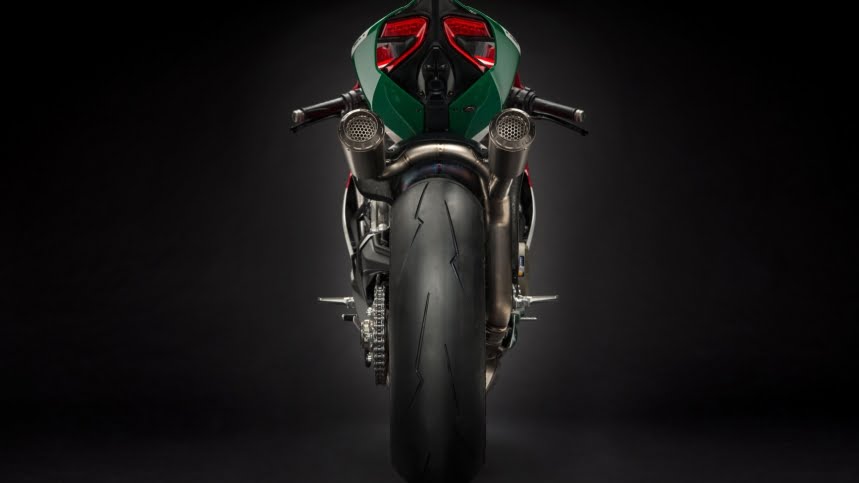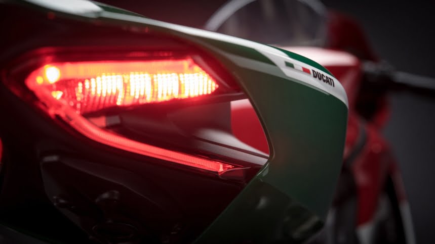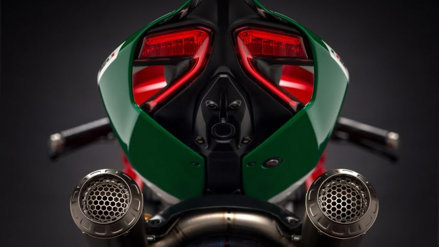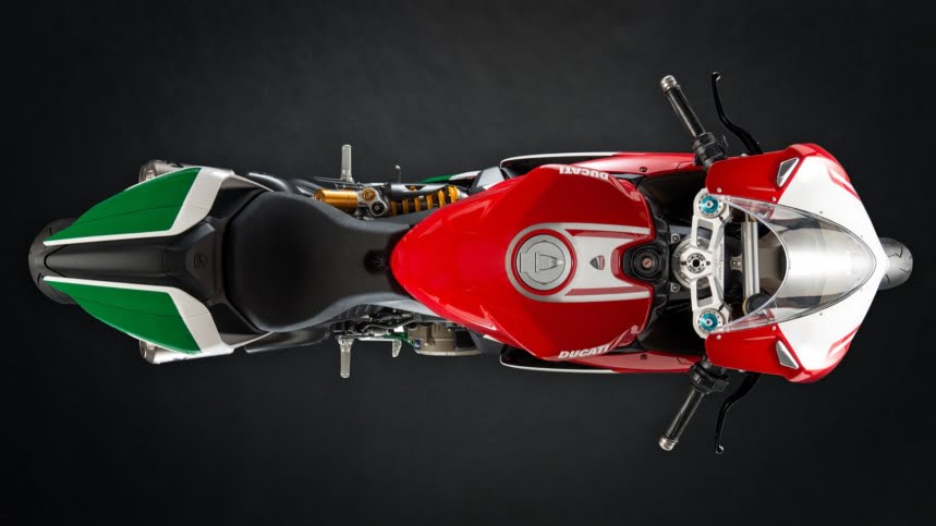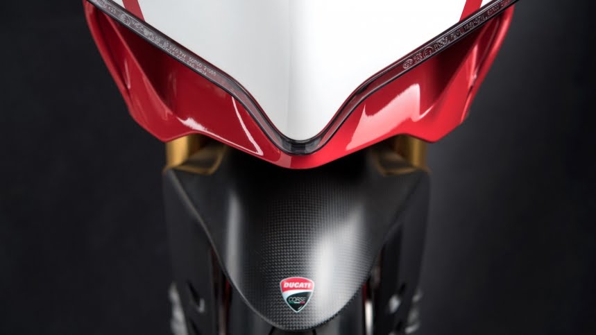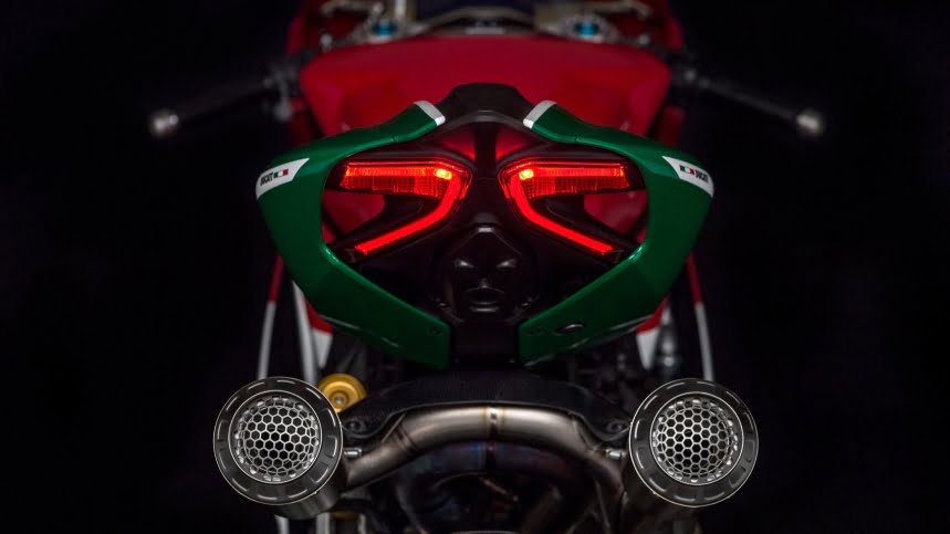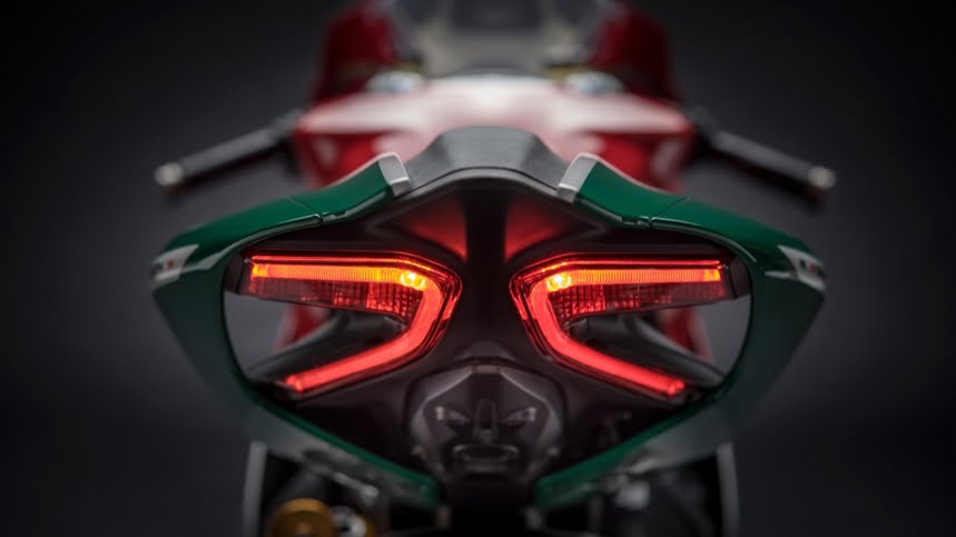Pour environ 45 000 euros, vous pourrez donc commander votre Ducati 1299 Panigale R Final Edition. une série numérotée mais pas limitée. Ce prix place la machine entre la Panigale R et la 1299 Superleggera, et se justifie par toute une multitude de caractéristiques techniques allant des aides électroniques (ABS avec aide en courbe, Traction Control, Anti-Wheeling, Frein moteur, etc., le tout configurable grâce à plusieurs cartographies) au moteur revisité ( 209 cv à 11000 trs/mn, couple de 142 Nm à 9000 trs/mn grâce à un alésage de 116mm et une augmentation du diamètre des soupapes de 46,8 à 48 mm pour l’admission et de 38,2 à 39,5 mm pour l’échappement).