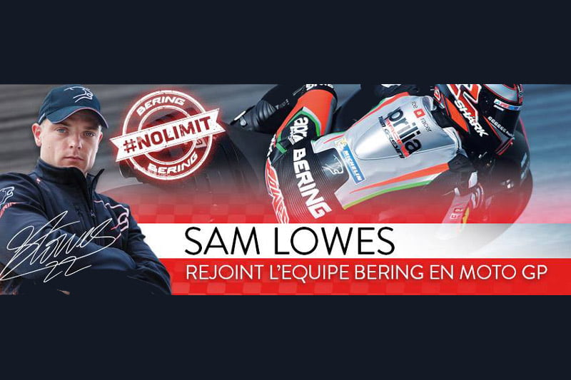 Sam Lowes, le pilote de vitesse britannique, a choisi de représenter la marque Bering sur une durée de deux ans, pour se lancer dans sa nouvelle aventure en MotoGP avec Aprilia. A quelques jours du début de saison MotoGP, Bering lance une campagne de vidéo digitale mettant en scène le pilote britannique Sam Lowes, premier ambassadeur de la marque en catégorie reine.