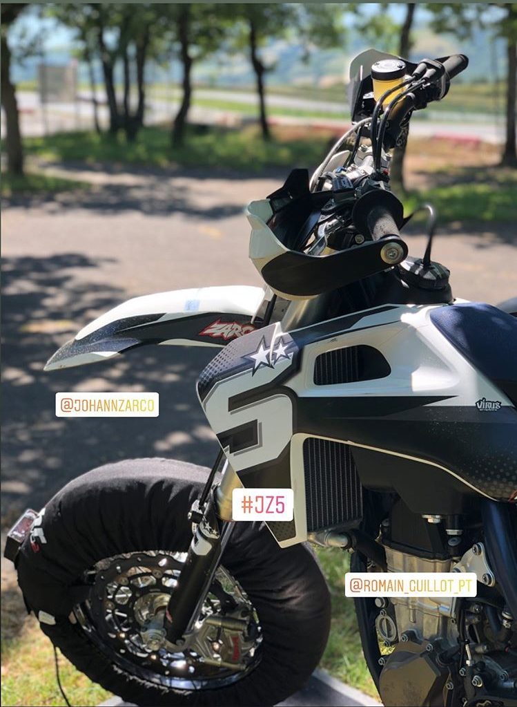 En effet, Johann Zarco a rejoint aujourd’hui le superbe circuit de karting de Belmont-Sur-Rance, dans l’Aveyron, pour effectuer une remise en jambes sur son Supermotard, discipline qu’il pratique régulièrement avec Thomas Chareyre, multiple Champion du Monde de la discipline. Comme on peut le voir sur la vidéo ci-dessous, il a pu profiter d’une piste privatisée et a très vite retrouvé le rythme! Ça sent bon la reprise…