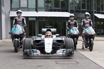Pour l’occasion, ils avaient emmené leurs motos pour une petite démonstration alors qu’en échange, George Russell, le pilote de réserve de l’écurie britannique, leur a expliqué entre autre toutes les subtilités d’un volant de Formule 1.