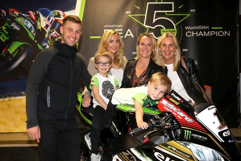 Jonathan Rea entouré de sa sœur, sa femme, sa mère et ses deux fils.