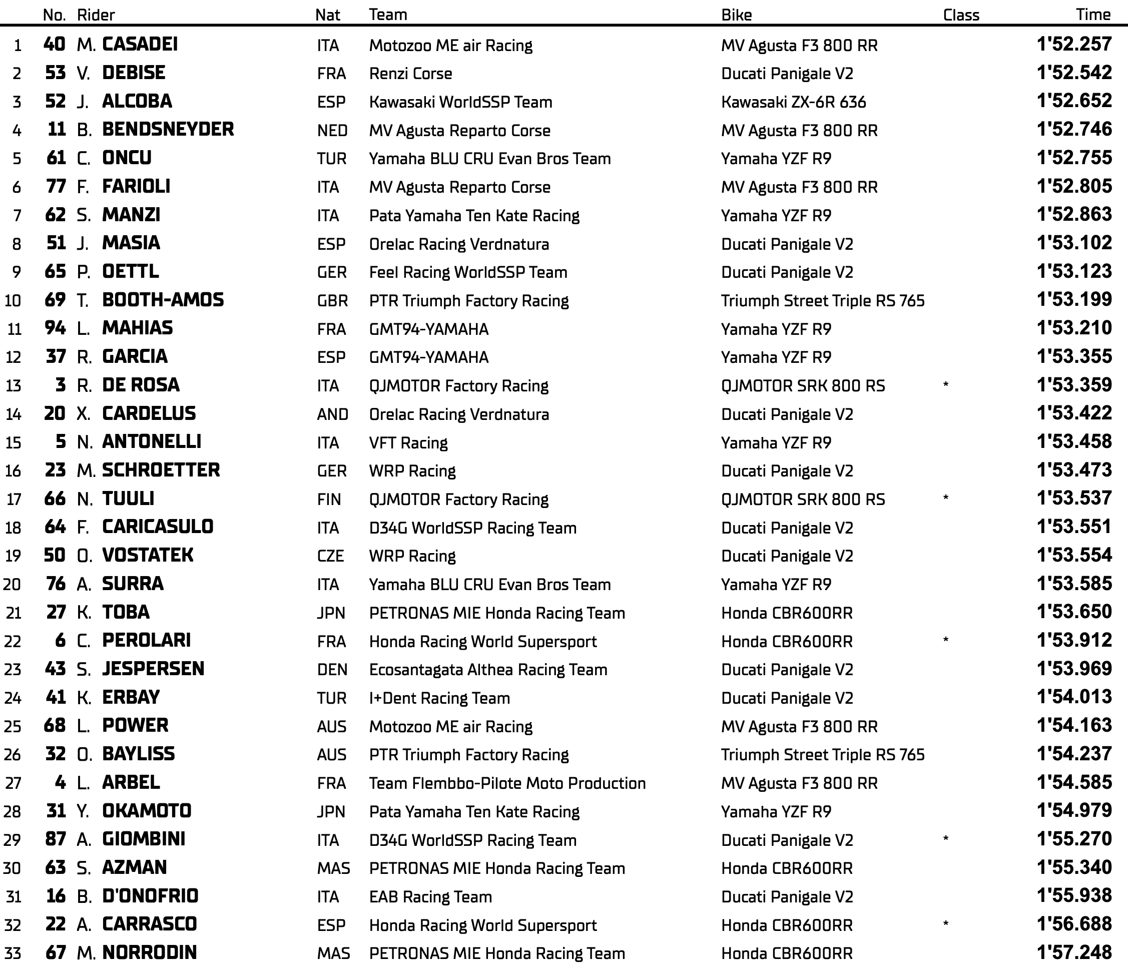 WorldSSP Aragon J1 – Le classement de la Superpole :