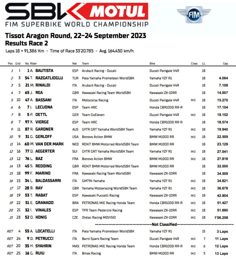 WSBK Aragon Superbike Course 2 : Bautista Land, le doublé est une aubaine pour le Championnat du Monde.