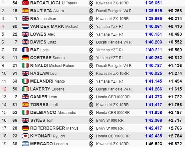 Le samedi, sur une piste nettement plus propre, le classement final des essais libres était favorable à Toprak Razgatlioglu.