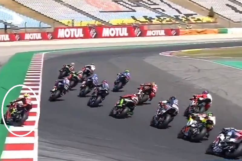 Lors du départ, comme on le voit sur les images ci-dessous, Bautista et Davies rentraient en contact dans le premier virage, et l’Espagnol était écarté vers l’extérieur de la piste.