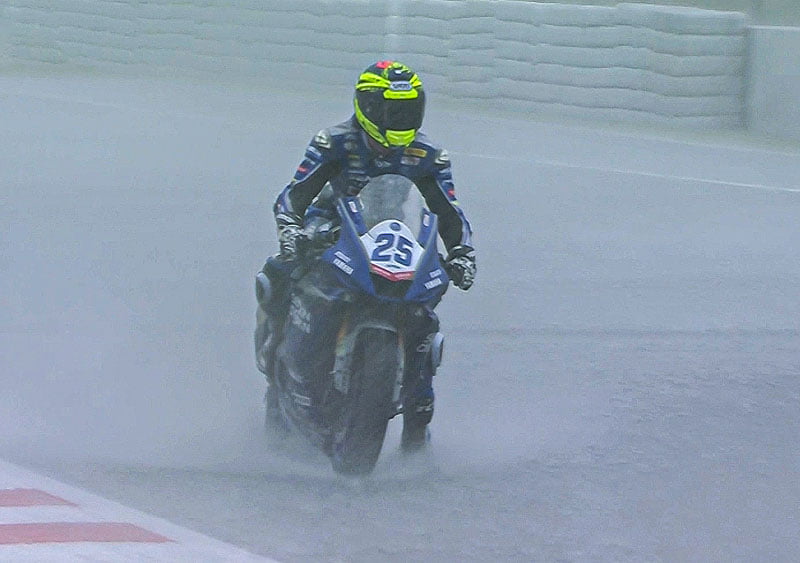 Sous une pluie diluvienne, le jeune français a décroché sa toute première victoire dans la catégorie après une interruption sur drapeau rouge.