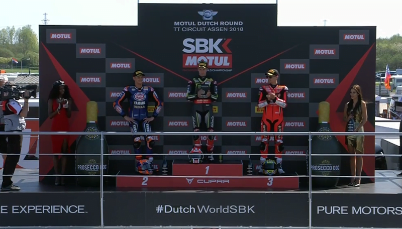 Dans le dernier tour, Johnny Rea remportait sa 57e victoire devant Michael van der Mark, Chaz Davies, Tom Sykes et Xavi Fores. Loris Baz terminait septième. C’était la huitième victoire consécutive de Johnny Rea à Assen.
