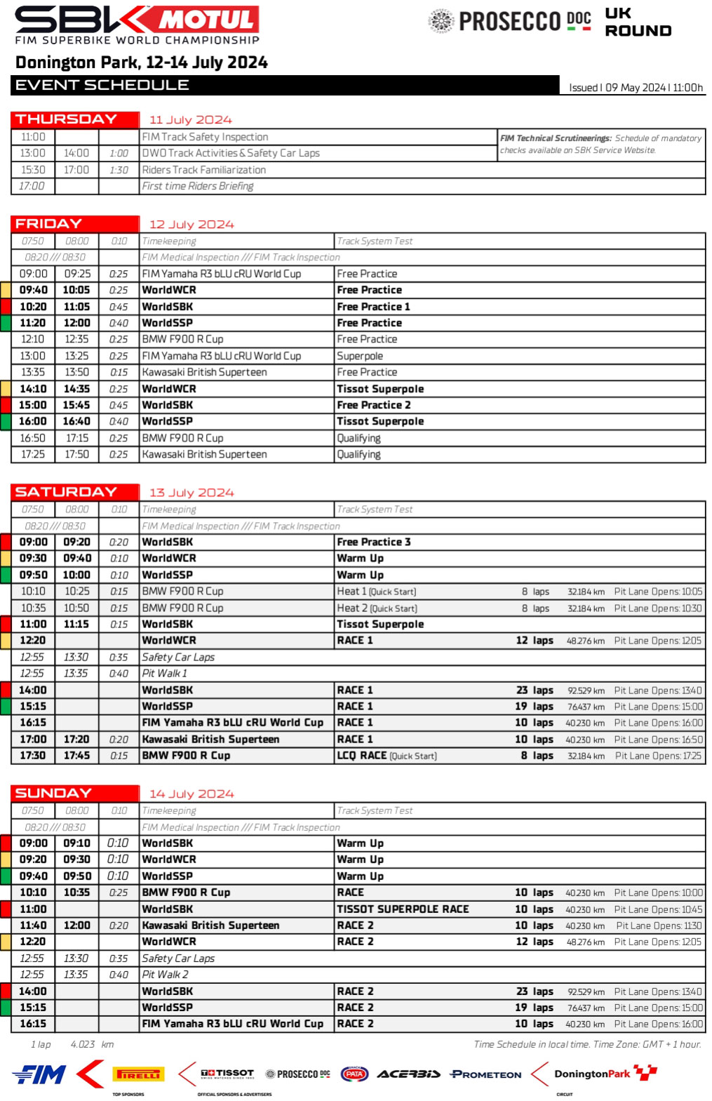devra démontrer sa capacité d’adaptation à Donington Park avec la BMW, dans le but de prolonger sa série de quatre victoires consécutives et d’égaler le record de neuf victoires de Marco Melandri pour le constructeur bavarois. Nicolo Bulega aborde Donington Park au guidon d’une Superbike pour la première fois, fort de son expérience acquise lors de ses deux saisons en Supersport. Jonathan Rea, quant à lui, visera peut-être sa quatrième pole position consécutive sur le circuit britannique, mais devra s’adapter pour cela au circuit avec la Yamaha pour la première fois.