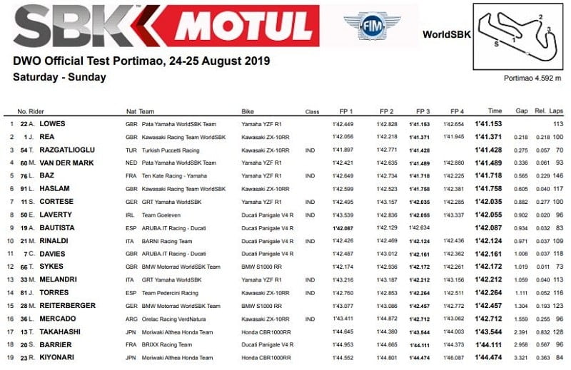 Résultats des 2 jours de tests de Portimão :