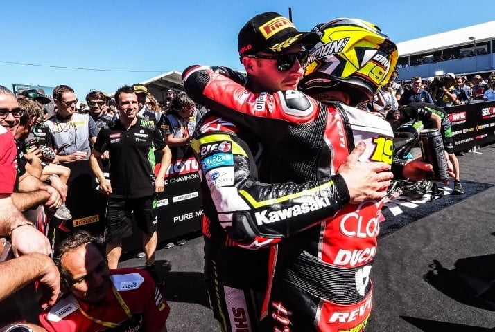 « Voyons voir, c’est un championnat du monde et les meilleurs au monde courent. C’est différent du MotoGP, les motos sont différentes, les règles sont différentes, les pneus sont différents, donc vous ne pouvez pas comparer. Pour moi, gagner ici vaut plus qu’un podium là-bas. Il est clair que beaucoup de gens disent que le MotoGP est le meilleur, mais c’est de toute façon un championnat du monde, donc c’est tout aussi important de gagner dans le Superbike qu’une course en MotoGP. Ce fut une fin de semaine formidable, où j’ai réussi à gagner trois courses, ce que personne d’autre n’a connu. Ici, il y a bien plus qu’une seule course, que ce soit du Superbike ou du MotoGP. »