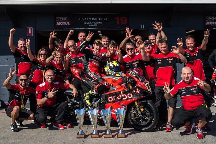 « Voyons voir, c’est un championnat du monde et les meilleurs au monde courent. C’est différent du MotoGP, les motos sont différentes, les règles sont différentes, les pneus sont différents, donc vous ne pouvez pas comparer. Pour moi, gagner ici vaut plus qu’un podium là-bas. Il est clair que beaucoup de gens disent que le MotoGP est le meilleur, mais c’est de toute façon un championnat du monde, donc c’est tout aussi important de gagner dans le Superbike qu’une course en MotoGP. Ce fut une fin de semaine formidable, où j’ai réussi à gagner trois courses, ce que personne d’autre n’a connu. Ici, il y a bien plus qu’une seule course, que ce soit du Superbike ou du MotoGP. »