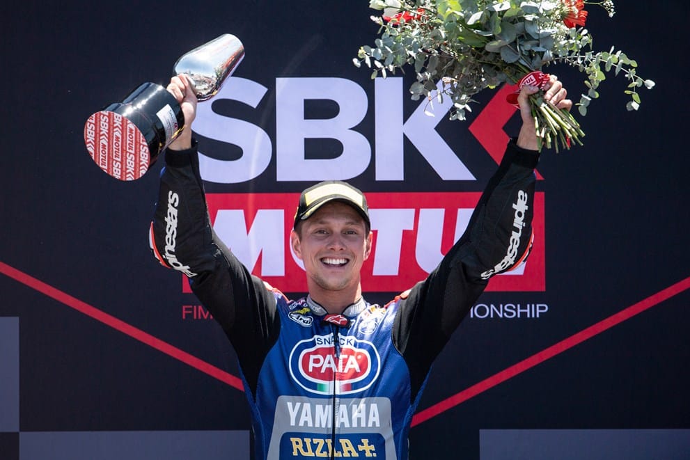 S’élançant donc de la 2e position pour la dernière course du week-end, le pilote Pata Yamaha prenait un bon départ et, après une brève bataille contre Marco Melandri et Toprak Razgatlioglu dans les premières étapes, suivait ensuite de près le champion du monde en titre, Jonathan Rea, qui s’était rapidement éloigné du groupe de poursuivants en tête de la course après la chute d’Alvaro Bautista.