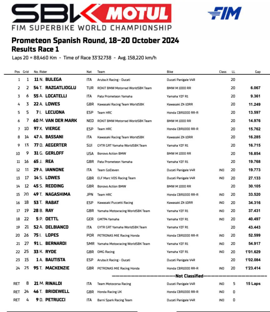Les deux premiers ont évidemment un peu éclipsé le reste. Notamment la belle montée sur le podium d’un Andrea Locatelli bien plus fort qu’il n’y paraît. Il est à Yamaha ce que Toprak est à BMW : le seul à pouvoir sortir l’araignée du trou. Malheureusement, Andrea Iannone a été un peu le chaînon manquant, souffrant de sa position de départ et du choix d’un pneu avant plus dur, comme Danilo Petrucci qui a été immédiatement poussé hors de la trajectoire par Alex Lowes et a chuté après seulement cinq virages dans le premier tour. L’ancien pilote de MotoGP s’est fait une contusion à la main droite et à l’avant-bras, et devra serrer les dents pour disputer les deux dernières courses. Il en a l’habitude.