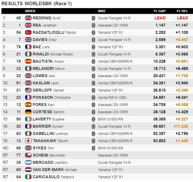 Crédit classement : Worldsbk.com / Dorna