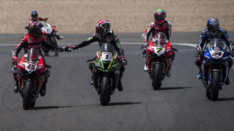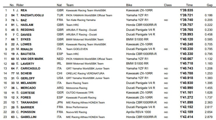 Après la première victoire de Scott Redding (ARUBA.IT Racing – Ducati) hier en WSBK, qui lui a permis de prendre la tête du championnat, Jonathan Rea (Kawasaki Racing Team WorldSBK), Toprak Razgatlioglu (Pata Yamaha Official WorldSBK Team), Loris Baz (Ten Kate Racing Yamaha) et Leon Haslam (Team HRC) ont répondu ce matin lors du warmup en précédant le Britannique sur le tracé andalou de Jerez de la Frontera.